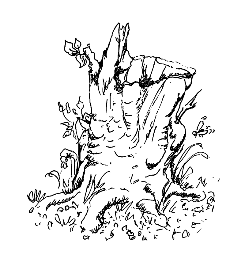 Etwas außerhalb vom Ort, an einem beliebten Spazierweg, wo vor allem sonntags die Familien mit Hund und Kinderwagen entlanggingen, stand ein uralter Baumstumpf. Er war hohl. Das war immer wieder ein beliebter Treffpunkt für die Buben.